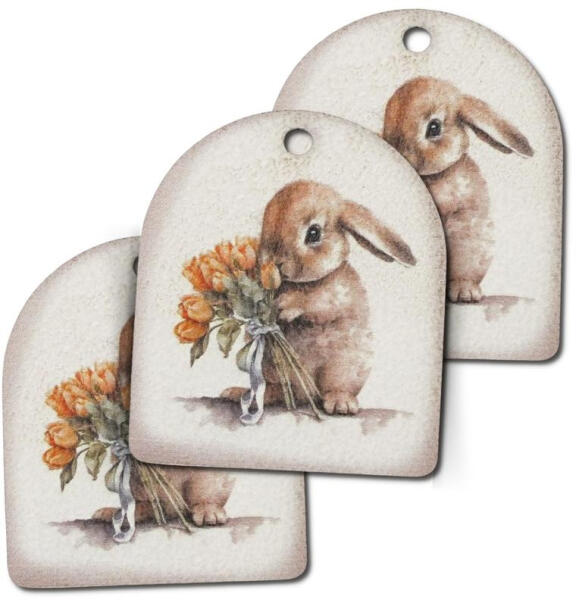Corolla Exp-Imp. Kft Nyomtatott fa tábla - Nyuszkó csokorral 3db/csomag