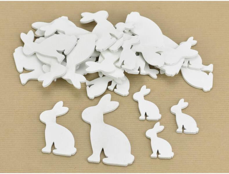 Krém színű nyulak, vegyes méretekben húsvéti dekoráció megalkotásához.