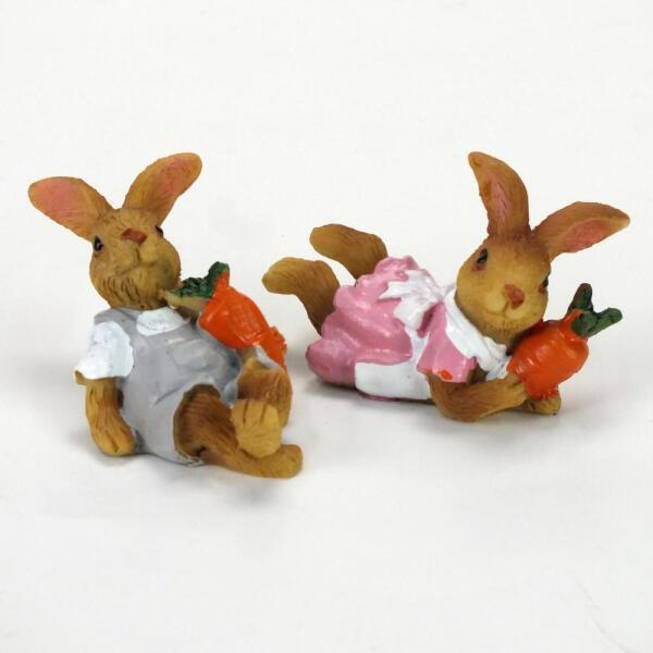 Mini húsvéti nyuszi figurák répával. Hátán fekvő fiú, és hason fekvő lány figurák, amik beillenek az összes húsvéti készítménybe, így kiváló választás lesz az idei húsvéti dekorációba.