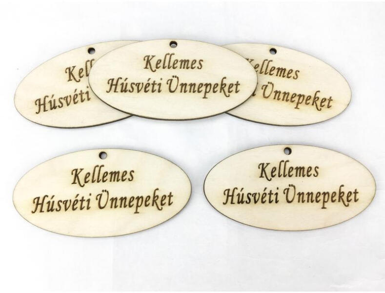 Natúr fa - "Kellemes Húsvéti Ünnepeket" ovál tábla 4x8cm 5db/csomag - csinaldmagadshop