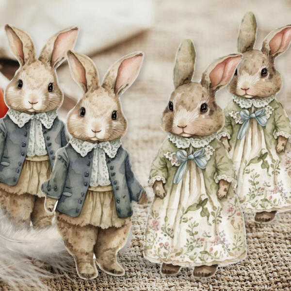 Nyomtatott dekorkarton - Klasszik nyuszi pár 8cm 4db 6977