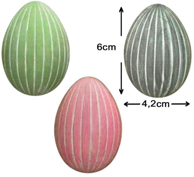 Nyomtatott dekorkarton - Pasztell csíkos tojások 6cm 3db/cs - papelito