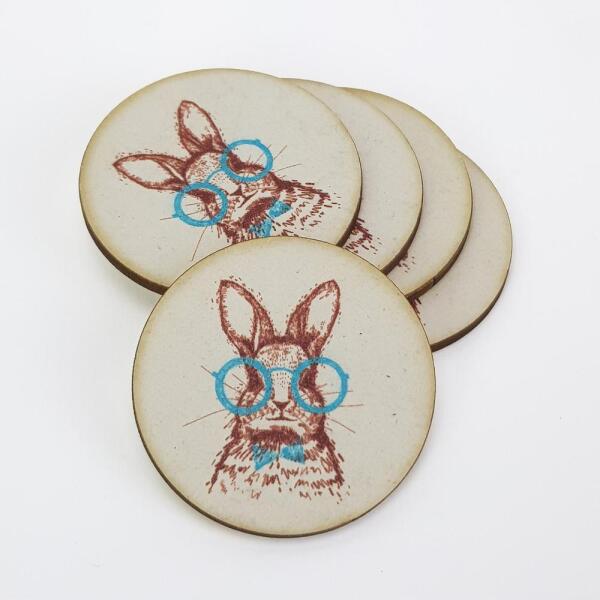 Nyomtatott fa tábla - Szemüveges trendi nyuszi kerek tábla 5db/cs - kosarbolt