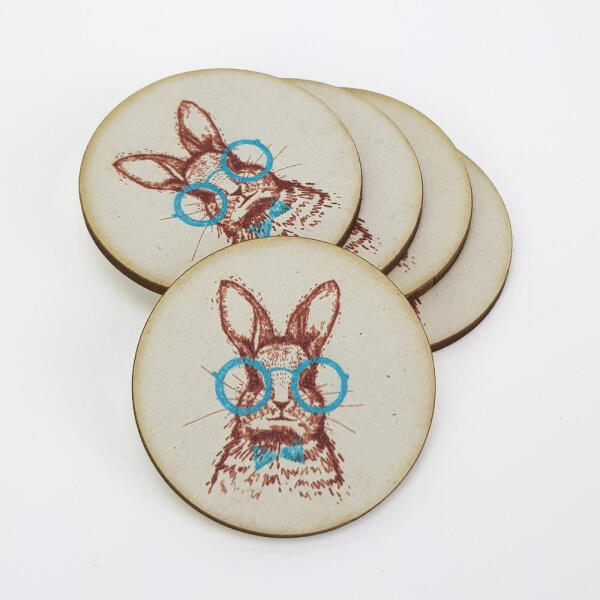 Nyomtatott fa tábla - Szemüveges trendi nyuszi kerek tábla 5db/cs - papelito