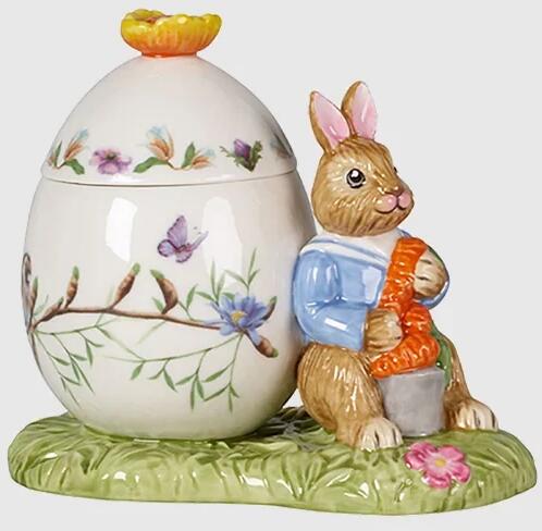 Porcelán dobozka a húsvéti édességnek Ismerje meg Ön is a Hans nagypapa és unokái, Anna, Max és az imádnivaló Raul történetét. Az idős nyuszi papa szívvel-lélekkel tanítja kisunokáit a tojásfestés fortélyaira, mely már hosszú idők óta családi hagyomány a Nyusziéknál. A Villeroy & Boch most ezt a kedves történetet eleveníti meg a porcelán nyuszi figurákon keresztül. A Max nyuszi mintájával kiegészített tojás alakú dobozka nagyszerű helyet teremt a finom húsvéti drazsék és egyéb édességek, meglepetések számára. A jelenettel kombinált doboz pedig bájos kiegészítője is lesz a húsvéti hangulatba került otthonnak.